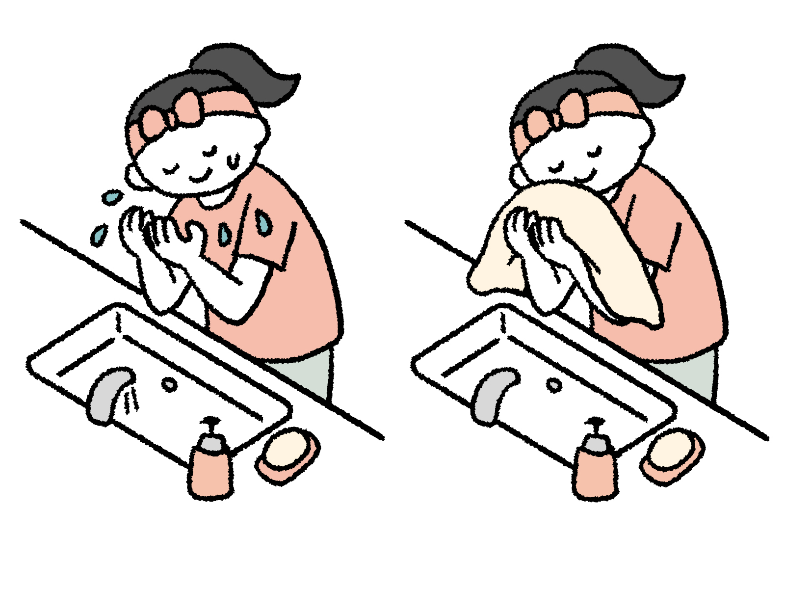 乾燥してからケアですと